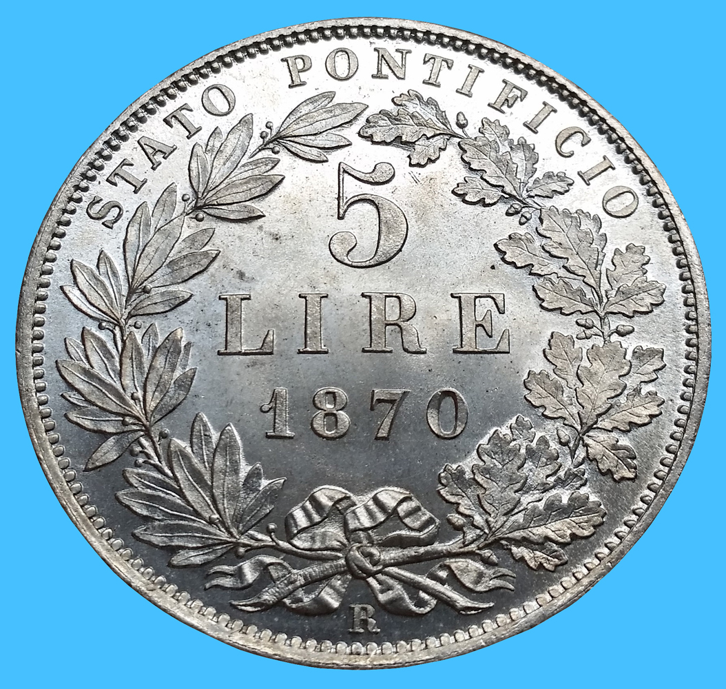 5 Lire 1870 Anno XXV Roma Pio IX Stato Pontificio